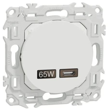 Schneider Odace 2025 – Chargeur USB-C 65 W – Blanc craie – Charge rapide forte puissance