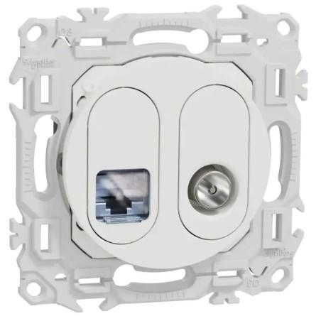 Prise mixte RJ45 Cat.6 STP + TV – Gamme Odace – Blanc craie