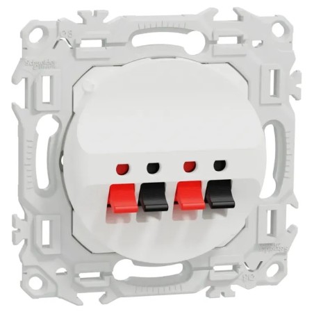 Odace 2025 - prise haut-parleurs double 2 sorties - 4 poussettes identifiées noir/rouge - cache peinture - blanc RAL 9003 mat