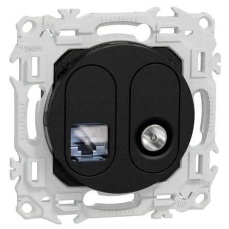 Odace – Prise mixte RJ45 Cat6 STP + TV – Noir Onyx
