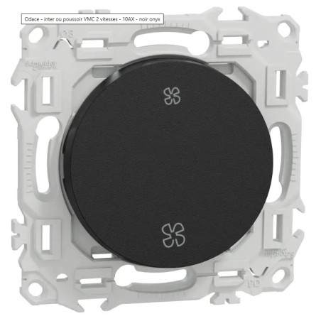 Odace – Inter ou poussoir VMC 2 vitesses – 10AX – Noir Onyx
