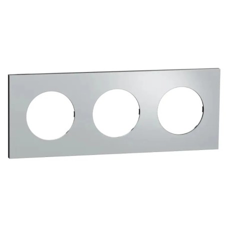 Odace Métal - plaque de finition 3 postes - effet Aluminium support noir