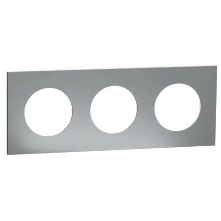 Odace Métal - plaque de finition 3 postes - effet Titane support blanc