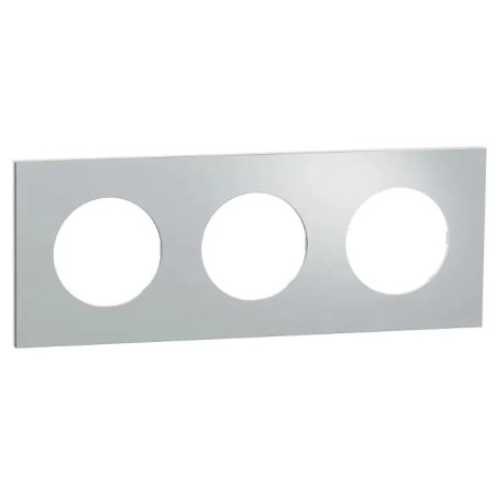 Odace Métal - plaque de finition 3 postes - effet Aluminium support blanc